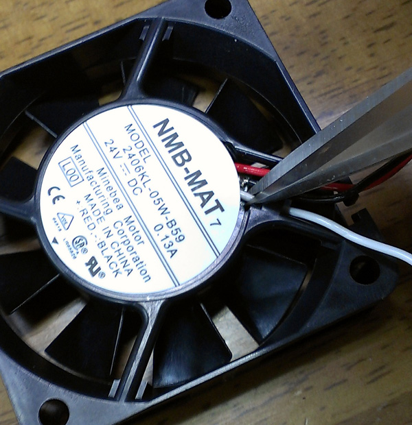 不要な、コントロール用のケーブルはファン側でカットしてしまいます。